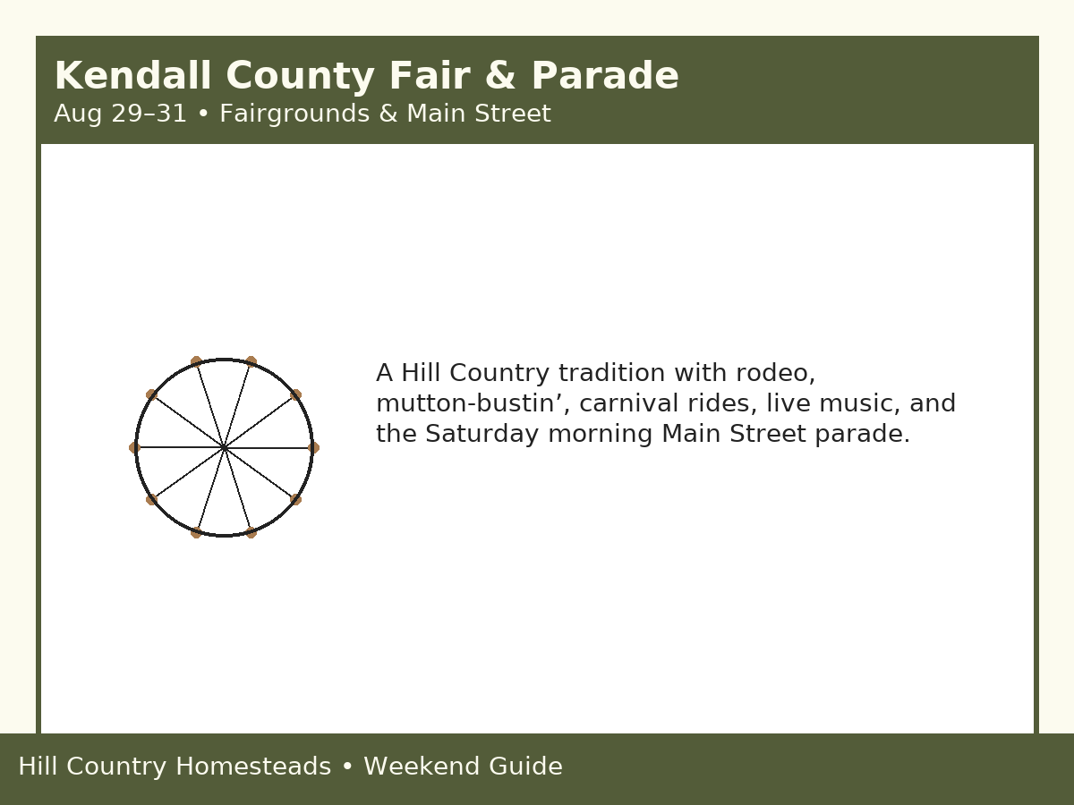 Kendall Co Fairgrounds & Main St, Boerne | kcfa.org |